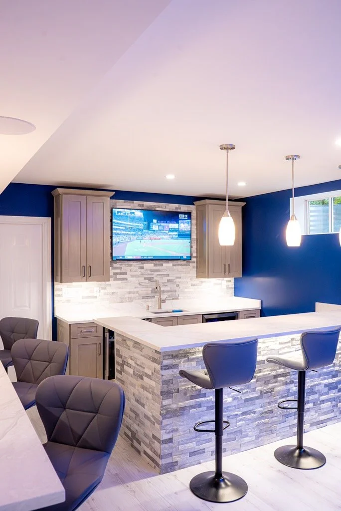 We specialize in finished basements, mother daughters, basement bathrooms, new offices, sports bars, gyms or what ever you can dream up. We will design around your ideas or help you design it. Message for free in-home visit or call 888-972-2736